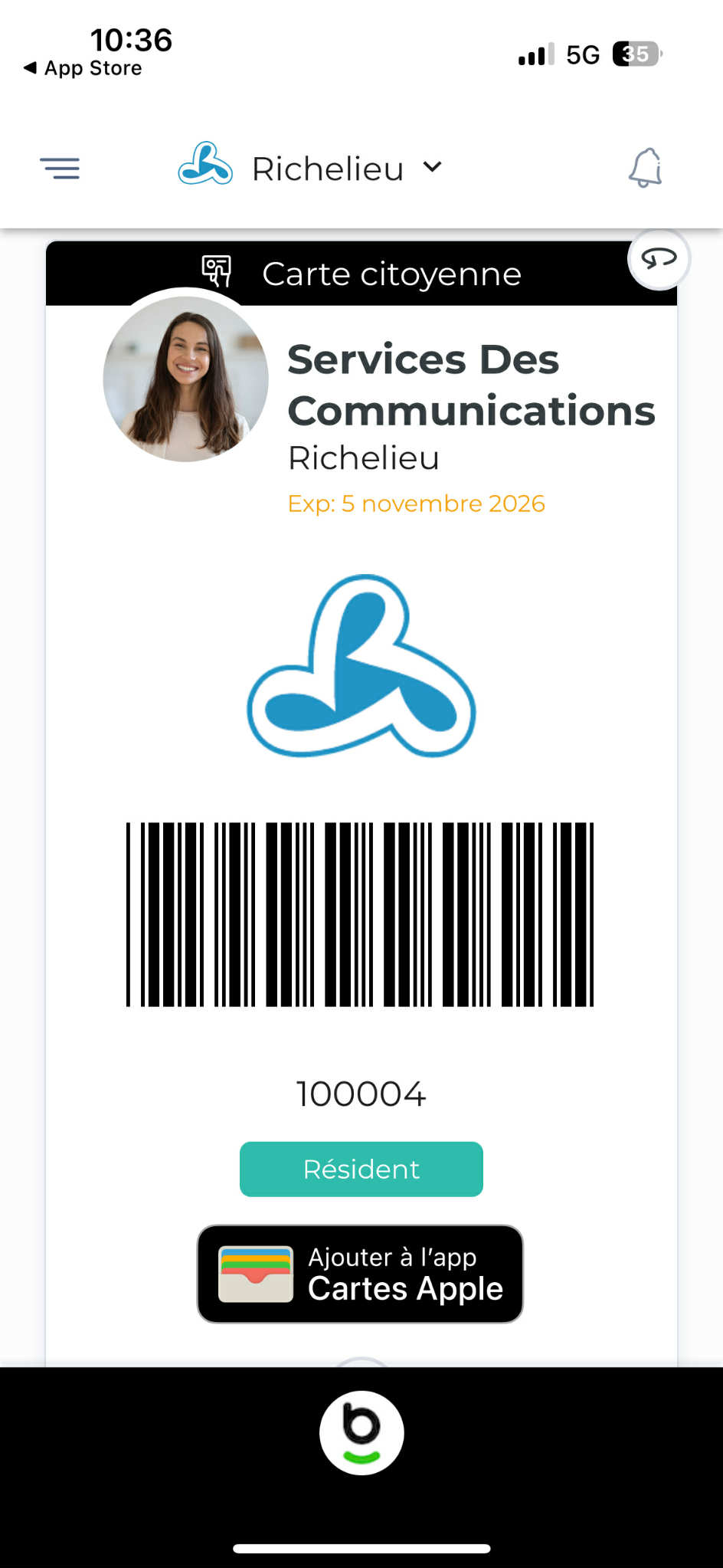 - Carte citoyenne numérique : consultez et utilisez votre carte directement depuis votre téléphone.