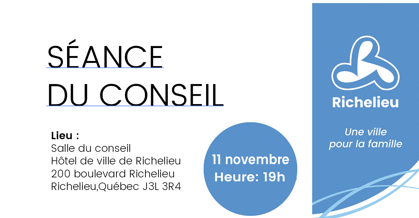 Chaque mois, les membres du conseil municipal de la Ville de Richelieu se réunissent en séance pour présenter à la population les dossiers en cours et les projets à venir.